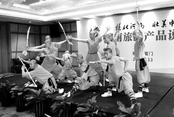 双枪刺身、头开钢板、银枪锁喉……4月13日上午,在厦门举行的河南旅游产品说明会现场,我馆功夫表演团众弟子的表演让观众叹为观止。