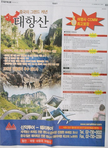 安阳市旅游局在韩国观光新闻报上的专题宣传广告