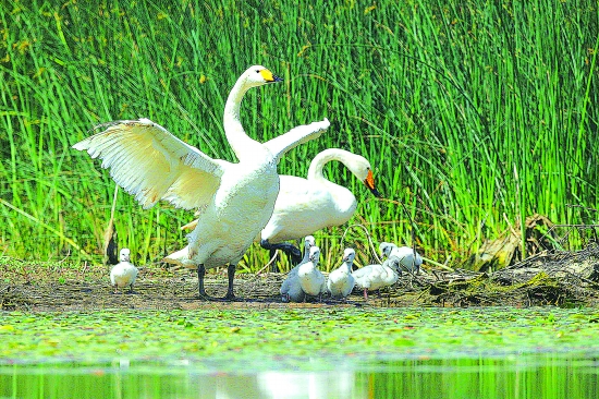 白天鹅在三门峡市成功产下六只“宝宝”(王宏伟 摄)