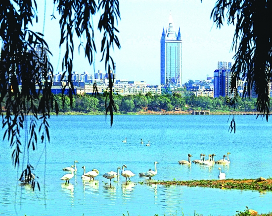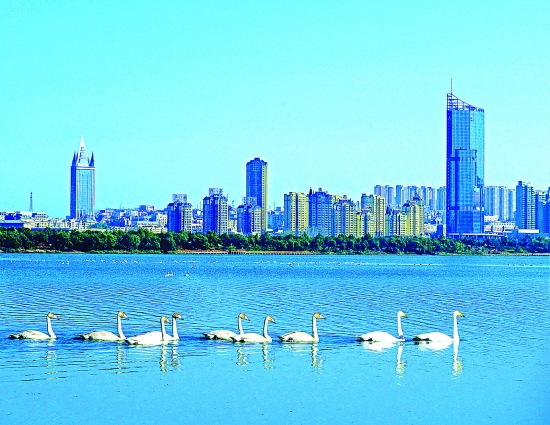 据天鹅湖国家城市湿地公园管理处工作人员观测,截至昨日上午,已观测到100多只白天鹅在湿地栖息。