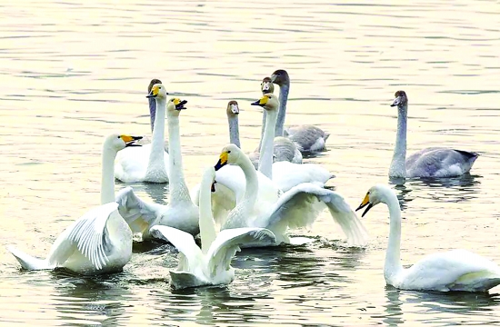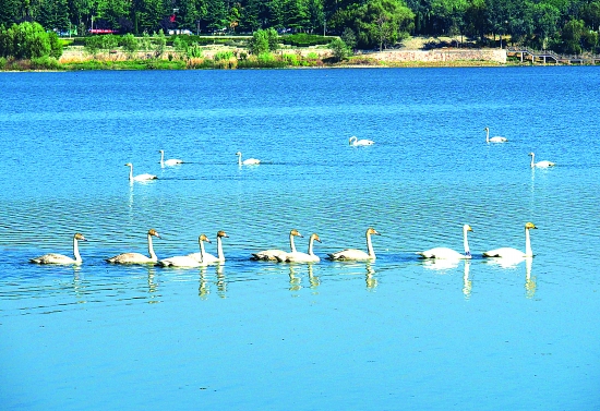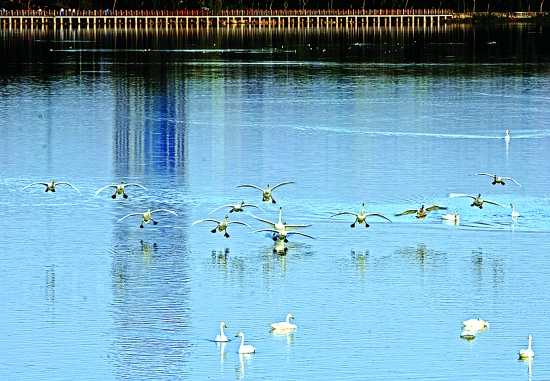 10月中旬,三三两两的白天鹅陆续回到了三门峡的家,与在三门峡留守的20多只白天鹅会合。到了28日,白天鹅的数量已经迅速增加到了500余只。湿地公园管理处的工作人员告诉记者,随着气温的转冷,这个数字还将迅速扩大。去年冬天,栖息生活在天鹅湖里的白天鹅一度超过1万只。