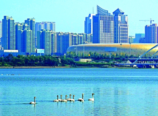 近年,随着三门峡加大对环境保护的投入,整合市内1.2万亩的黄河湿地公园、3000亩的黄河公园等保护区域,三面环水的三门峡已经成为天鹅与人和谐共舞的生态宜居城市。