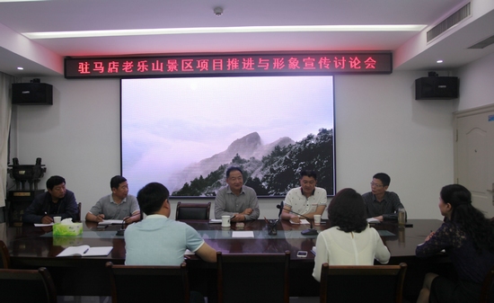 为了加快推进老乐山景区项目建设,全面启动景区形象宣传工作,6月1日下午,驻马店市老乐山旅游开发有限公司董事长王伟、常务副总经理职卫军、副总经理张建民等景区负责人,来到驻马店市旅游局汇报老乐山景区项目推进和形象宣传等工作。该市旅游局党组书记、局长高峰,党组副书记、副局长刘白汀,党组成员、副局长白云鹤,副调研员李铁军等局领导和局办公室、规划发展科、监督管理科等有关科室负责人参加座谈。