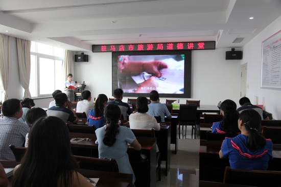 为扎实推进社会主义核心价值观建设,不断提升驻马店市旅游局全体干部职工的思想道德水平,在全局营造“爱岗敬业,无私奉献”的浓厚氛围,按照省、市文明办关于开展“道德讲堂”建设活动的有关要求,7月11日下午,驻马店市旅游局举行了以“爱岗敬业,无私奉献”为主题的道德讲堂活动,驻马店市旅游局系统全体干部职工参加了此次活动。