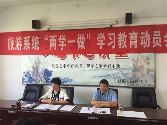 近日,市旅游发展委员会召开旅游系统“两学一做”学习教育常态化制度暨“学树促”活动动员会,机关全体人员、各党支部负责人参加了会议。会议传达了全市“两学一做”学习教育动员会精神,并印发《关于推进“两学一做”学习教育常态化制度化的实施意见》和《关于在旅游系统深入开展“学愚公移山精神,树当代愚公榜样,促济源跨越发展”活动的实施方案》。市旅发委党组书记、副主任刘慧华同志对旅游系统内学习教育工作进行了动员部署。