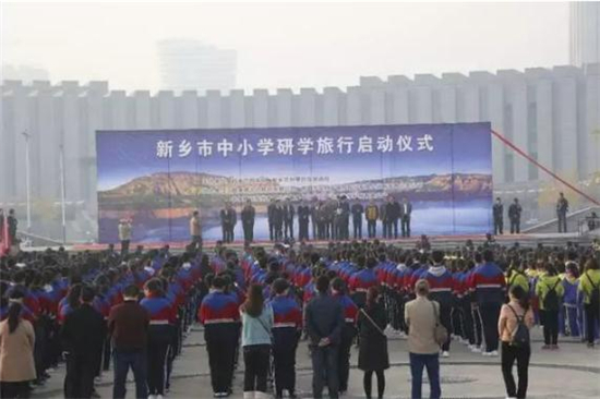 11月8日上午,新乡市在新区南广场召开2017年全市中小学研学旅行活动启动仪式,标志着新乡市研学旅行工作进入推进实施阶段。市委常委、宣传部部长丁同民出席仪式并宣布新乡市中小学研学旅行活动正式启动。市领导李红旗、周世杰、职伟、杨书廷,省现代教育技术研究院副院长徐静斌出席启动仪式。相关市直单位主管领导,中小学教师代表、学生代表参加了仪式。