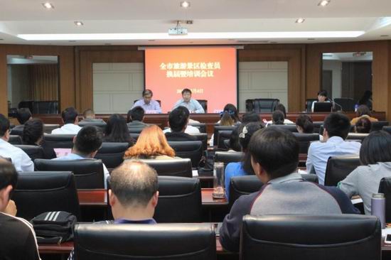 为严格旅游景区评定复核程序,规范新乡市景区检查员队伍管理,全面提升景区检查员队伍的业务能力和服务水平,5月4日,新乡市召开全市旅游景区检查员换届暨培训会议,上午邀请开封清明上河园质量管理部经理杜全红讲解A级旅游景区质量等级评定标准,下午到新乡八里沟景区进行现场模拟检查。各县(市、区)、各旅游景区、驻新高校拟聘任检查员约70余人参加了培训会议。
