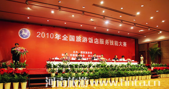 由国家旅游局主办、浙江省旅游局和宁波市人民政府承办的“2010年全国旅游饭店服务技能大赛”,于7月14日至15日在宁波落幕。来自全国31个省市自治区和新疆建设兵团的32个代表队128名选手参加比赛。国家旅游局副局长杜江,浙江省旅游局副局长叶建国以及宁波市副市长徐明夫、副秘书长黄辉等领导出席开幕式。