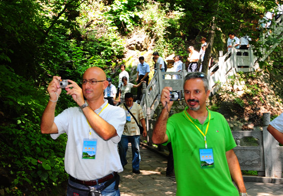 来自意大利和希腊的两位专家抑制不住激动的心情,分别为白云山题词盛赞白云山美景,并表达谢意。意大利专家毛里佐.布拉多题词:“与你们一道欣赏令人陶醉的自然风光,极为美妙的景色,并遇到了友好的人民,对你们的盛情,深表感谢。”希腊专家巴比斯.法索拉斯题词:“我们领略了贵方的美景,令人神往的景区,壮观的瀑布,以及你们的盛情,谨致谢意!”