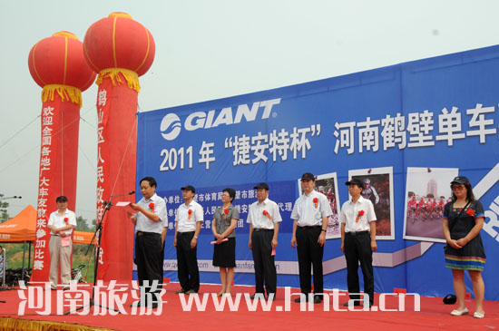 在鹤壁市人民政府和河南省旅游局的支持下,7月17日,由鹤壁市旅游局和鹤壁市体育局主办,鹤壁鹤山区政府、江苏王房集团、捷安特河南总代理联合举办鹤壁市首届自行车嘉年华比赛在鹤壁鹤山区举行。河南省旅游局党组成员、纪检组长周保建,鹤壁市委常委、宣传部长费银普,鹤壁市副市长高雅玲,鹤壁市旅游局局长徐伟以及鹤山区领导等参加了启动仪式。周保建组长宣布活动启动。来自全国各地的三百多名专业、业余选手参加了比赛。