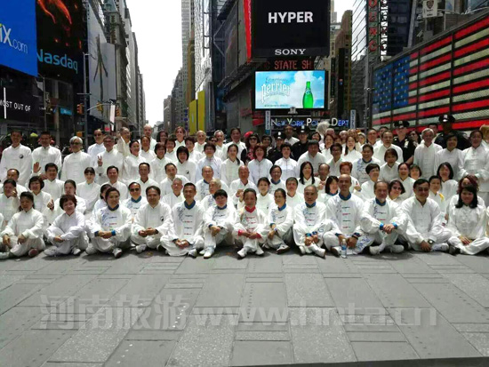 在2016“中美旅游年”框架下,中美双方将陆续开展百项交流活动。作为“中美旅游年”的主题活动之一,5月14日,由河南省旅游局主办的“探寻中国太极发源地,提倡健康生活每一天”——2016纽约时代广场百人太极练活动在美国纽约时代广场成功举办。来自纽约陈式太极拳养生中心等全美十余家著名的太极传播中心超过150名的太极拳选手在时代广场这个“世界十字路口”聚集,数千名来自世界各地的游客在此驻足,一起共享此次太极盛会。这是继在纽约时代广场及纽约地铁上推出河南旅游宣传片后,河南省旅游局在美国东部地区开展的又一项重磅旅游推广活动。中国国家旅游局驻纽约办事处副主任潘肖澎莅临现场参加了此次活动并对活动给予了高度评价。