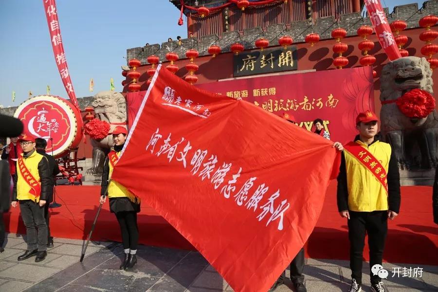 2018年2月6日上午十点,“过大年回老家 文明旅游看河南”暨2018大宋年文化节启动仪式在开封府景区府门广场正式开始。启动仪式由开封市人民政府副秘书长王亚文主持。到会人员有河南省旅游局副局长周耀霞女士、河南省文明办副主任葛卫华女士、开封市人民政府副市长孙晓红女士、河南省旅游局旅游促进处处长汤雁女士、河南省文明办志愿服务处处长高峰女士、河南省文明办创建处调研员赵鲁鹤先生、开封市市委宣传部副部长市文明办主任何利军先生、开封市旅游委主任薛冬女士、开封市开封府旅游开发有限公司董事长段朝现先生。