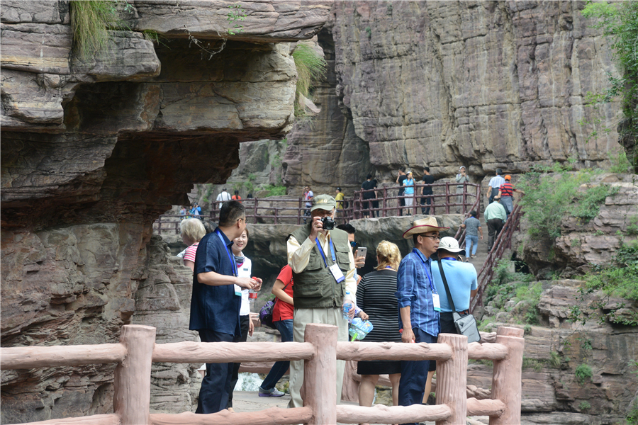 接下来,考察团沿着干净整洁的旅游步道,畅游了云台山红石峡景区。
