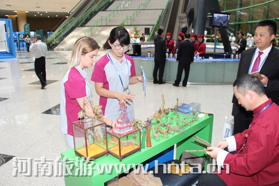 Caitlin的同学Xanthe,同样难掩首次来华的兴奋之情。“我喜欢中国传统工艺,会场里有一项‘捏面人’的手艺,神奇得简直让人难以置信。”她们从“面人”里认识了中国四大名著《红楼梦》里的史湘云、开封府的“包青天”。“用这种手法把历史人物刻画出来,又这么生动,希望我可以把他们介绍给其他国家的参会者。”Xanthe说。