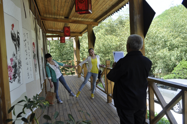 鸡冠洞天香书画院广场书画活动受游客欢迎