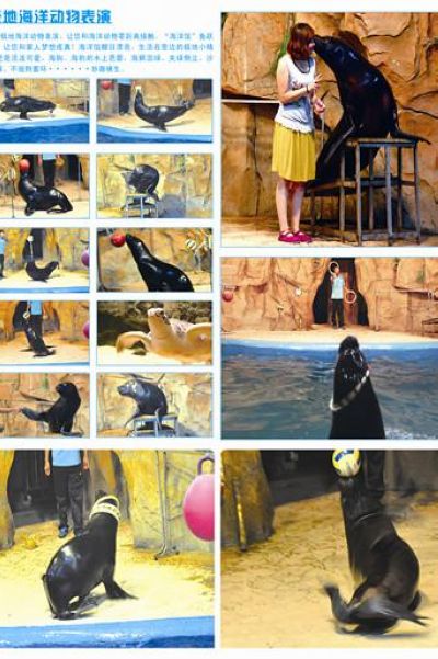 在海洋剧场,来自南美乌拉圭的动物明星,个个身怀绝技。海狮“海伦”美女,可是能歌善舞,跳起“街舞”一点也不逊色嘻哈帮的街舞高手们。除了精彩的“鼻上弹球”,“顶球倒立行走”等,聪明的大海狮,模仿鲨鱼游泳是有模有样的。会在水中跳芭蕾舞的海狗、海豹,让你对这些极地小精灵们不得不刮目相看,报以热烈的掌声。