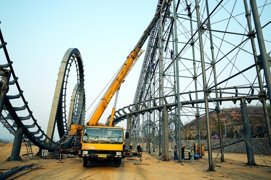 长达680米的四环过山车正在进行焊接安装(王旭国 摄)
