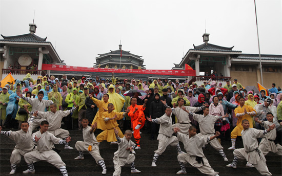 “万名北美游客游河南”首发团欢迎仪式在少林寺武术馆举行