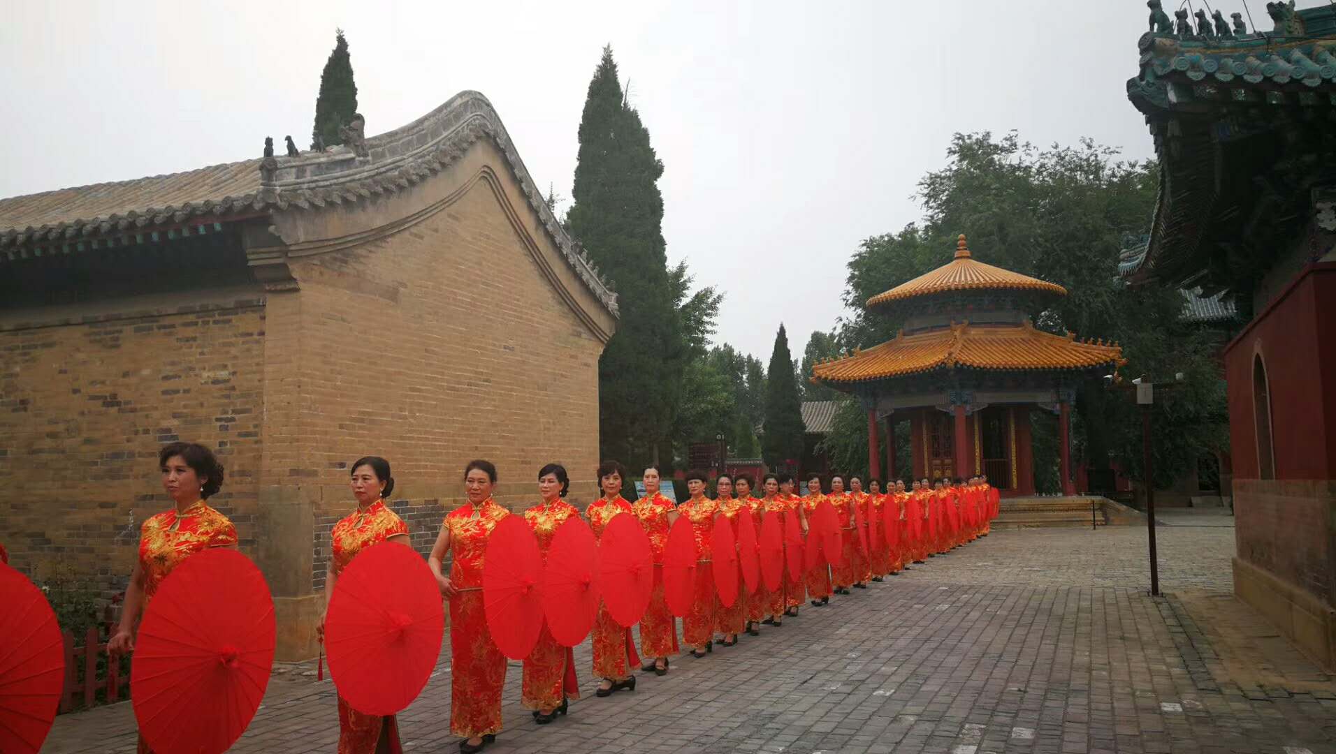 武陟旗袍协会的百名佳丽,身着多种款式、多种颜色的旗袍,手握斑斓油纸伞,伴着悠扬的乐曲,漫步皇家建筑中,缓缓走来,就像时光里绽放的芳华,温润灵动、素静安然;嘉应观景区演出清代宫廷女子极具满族特色的“庆隆舞”,将活动推向了高潮。现场既有精彩的旗袍走秀、文艺演出,又融合多元化的清代官式建筑元素,让游客身临其境,感受这座百年历史文化名观的独特韵味,展示中国旗袍与古代建筑的创意结合。