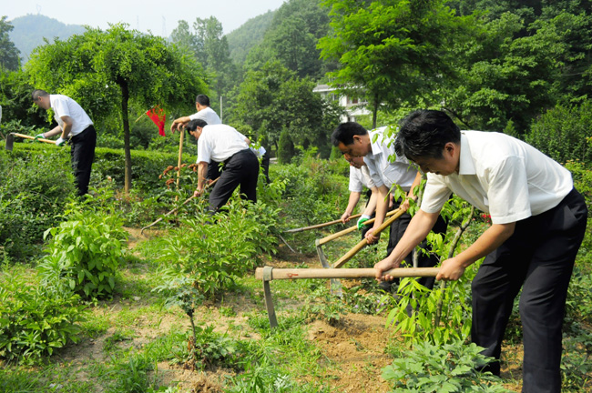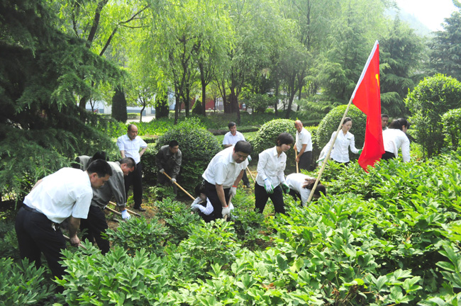 6月4日,鸡冠洞景区的70余名党员胸戴党徽,手拿薅锄,到高山牡丹园对园内杂草进行清除。劳动中,大家积极踊跃,不怕苦、不怕累,互相合作,齐心协力,干得热火朝天。尽管天气炎热,劳动现场尘土飞扬,很多人干得汗流浃背,灰头垢面的,但是同志们对劳动的热情丝毫不减,干劲十足。经过紧张的劳动,高山牡丹内的杂草、垃圾全部清除干净,大家看到用自己勤劳双手装扮的优美旅游环境,每个人的脸上都绽开了喜悦的笑容。