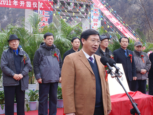 县委常委、宣传部部长朱金斗宣布天池山2011开园及登山赛开始