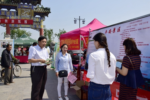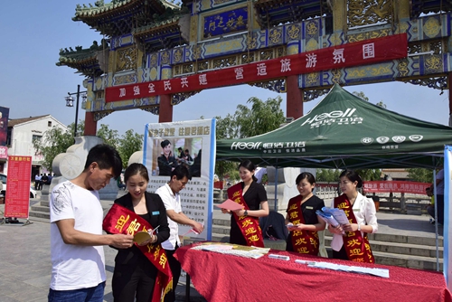 今年5月19日是第6个“中国旅游日”。当天,鹿邑县旅游局在明道宫景区众妙之门牌坊前隆重举行了“中国旅游日”活动。县旅游局丁震、李先福、董慧等领导亲临现场,旅游局全体人员和太清宫景区、明道宫景区、迎君国际酒店、鹿邑饭店、鹿邑中旅、金色假日旅行社、鸿雁旅行社、万里旅行社、彩云旅行社、日月旅行社等旅游企业人员参加了活动。