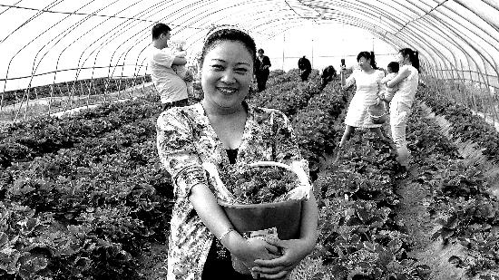 5月17日,湖滨区交口乡野鹿村草莓园里人流不断,利用双休日来此观光采摘的市民个个喜笑颜开,体验收获的喜悦。