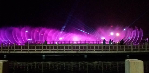 上清湖水域面积达到16.7公顷,建有亲水平台、游船码头、景观栈道、儿童沙滩、湖心岛、音乐喷泉、景观桥、观水亭、山峰等景点,并有休闲广场、停车场、游客服务中心等配套设施。音乐喷泉整体长120米,宽度20米;三座山峰耸立湖畔,主峰高33米。这些数据在一马平川的豫东平原,鹿邑的周边县市都是首屈一指的。踏着青石台阶或沿着盘山坡道来到山顶,以及登临十多米高的观水亭,可以俯瞰整个湖区,绕湖车道、步行园道和布石小径、健康游道想三条红飘带围绕湖区,东北角的正清林里修竹清风,魅影婆娑,加之林立高楼倒映水中,真是湖光山色美不胜收。