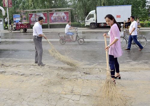鹿邑县旅游志愿者走上街头开展“清洁家园”义务劳动