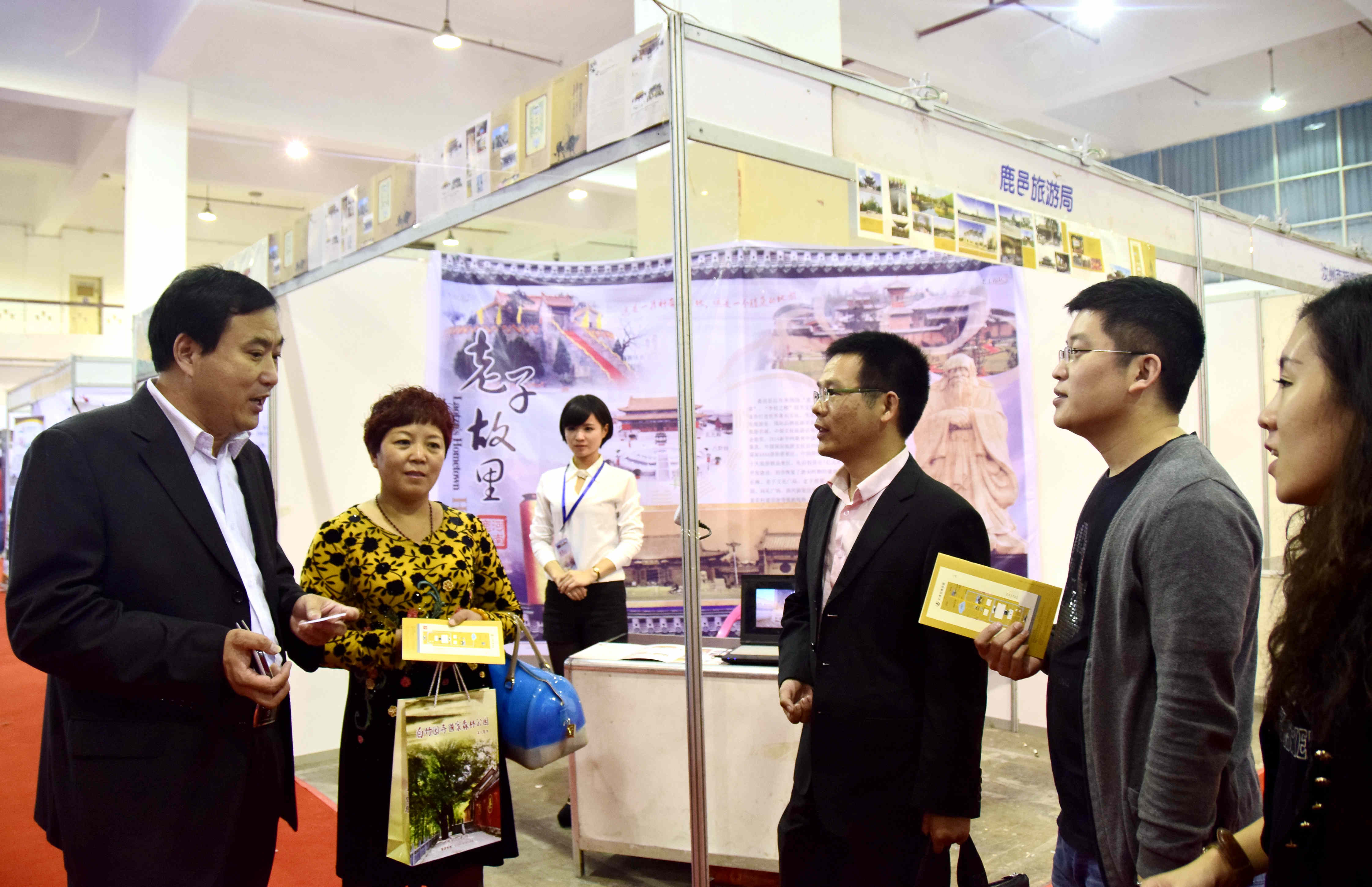 鹿邑县县委办副主任、旅游局局长丁震亲自带领老子故里旅游区工作人员参会,并向凤凰网河南旅游频道运营总监郭颖颖 、中原网旅游频道负责人及《乐驰天下自驾游护照》主办方等媒体负责人宣传推介老子故里;太清宫景区管委会副主任杜明珠、明道宫景区优秀讲解员云婷婷等积极解答游客咨询,讲解景区旅游惠民措施。展会期间,鹿邑县旅游工作者通过主办方液晶大屏和笔记本电脑循环播放老子故里宣传片,共发放宣传资料近两千份,宣传推介老子故里近3000人次,并被主办方授予“最佳组织奖”和“最佳参展企业奖”,进一步宣传了老子故里,树立了老子故里旅游新形象。