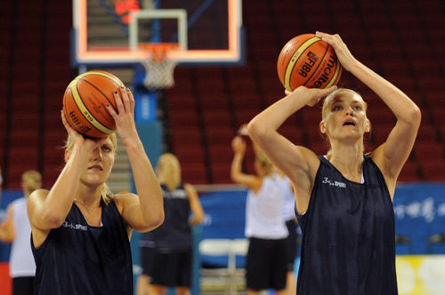 俄罗斯女篮备战奥运 队员们进行投篮练习