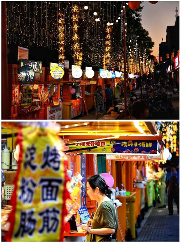 7月的夜晚散步来此,正赶上夜市“上新”,除了特色美食外,创意手工、纪念礼品……统统可以找到,主打一个好吃又好逛。