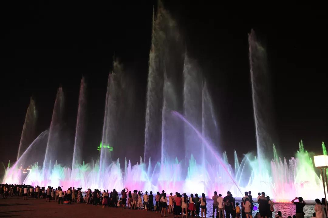 除了赏璀璨夺目的流光夜景,园区的声光电音乐喷泉也全新亮相。夏季夜晚的音乐喷泉美轮美奂。在《牧羊曲》《青春修炼手册》《鸿雁》《茉莉花》等知名歌曲的伴奏下,可变换26种造型,错落有致的立体彩色喷泉翩翩起舞,颜色与声音的碰撞洒满黑夜,为你展现夜色中的精彩水舞秀。