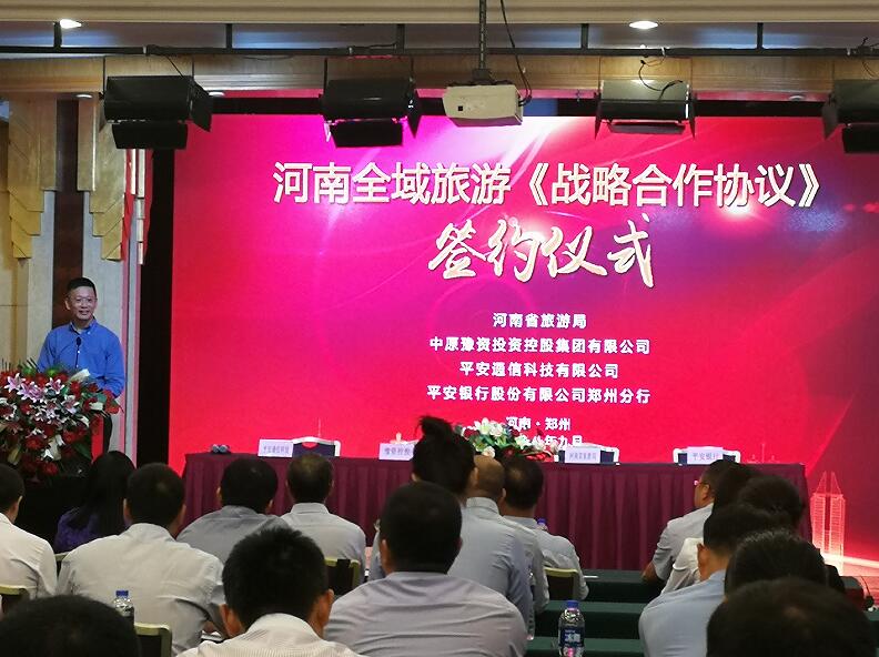 9月7日,平安银行股份有限公司郑州分行与河南省旅游局、中原豫资投资控股集团有限公司、深圳平安通信科技有限公司签署河南全域旅游《战略合作协议》,四方将充分利用各自资源优势和科技实力,强强合作,以建设河南全域旅游为发展思路,为河南省提供全域旅游顶层方案设计,建设涵盖行业标准、行业监管、行业评价、流量、交易、支付和数据的全域旅游线上及移动服务平台,打造河南省全域旅游生态体系的智能中枢。