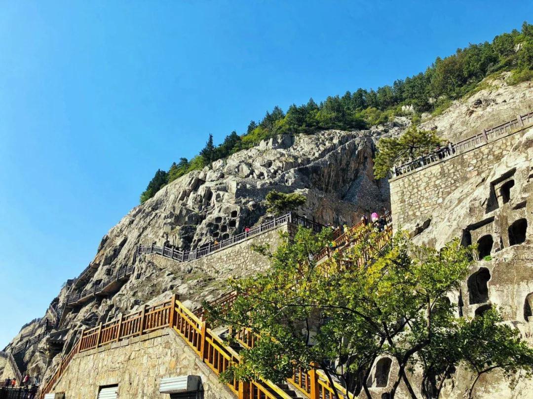 秋季的龙门有着适宜的温度,登临雕刻在龙门石窟崖壁上的窟龛,近观石刻艺术,远观更能欣赏到层林浸染的龙门山色,释放紧张压抑的心情和思绪,舒畅胸怀,放松身心。
