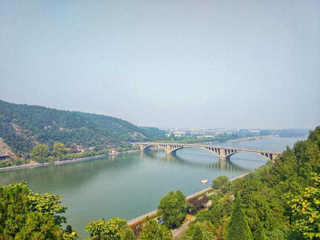 香山寺位于龙门东山半山腰,登临香山寺,香山层林尽染,在亭台楼阁间蔓延开来,与碧瓦飞檐相互映衬,别有一番秋韵,伊水缓缓流淌,船舶徜徉其中,如此之景,更添秋意。