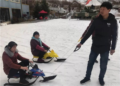 比赛二:雪地坦克、摩托比赛(一人一组,共10组,驾驶雪场的雪地坦克、摩托,途径雪场的专门赛道,到达终点用时最少者获胜。)