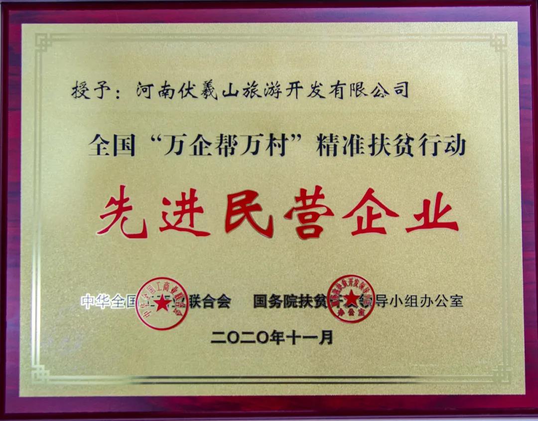 多年来,河南伏羲山旅游开发有限公司在公司董事长李松辰、总经理李梦培的带领下,通过旅游开发带动乡村振兴,带领群众“唤醒了沉睡的荒山,让那荒沟改变了模样”,共安排建档立卡贫困户2115人就近就业,直接参加山区旅游开发建设和管理实现脱贫;带动山区和山脚下村民组的建档立卡贫困户11533人,从事小商小贩、农家院、民宿酒店、家庭农场,实现了产业脱贫;吸引并带动数家境内外知名企业开建特色小镇、产业园区、观光农业等项目,拉动伏羲山及周边数万名农民实现了致富增收。为国家脱贫攻坚战顺利实施及2020年全面建设小康社会做出了贡献公司董事长李松辰还获得2020年河南省脱贫攻坚奉献奖,出彩河南人2019“动中原”十大年度人物的荣誉。