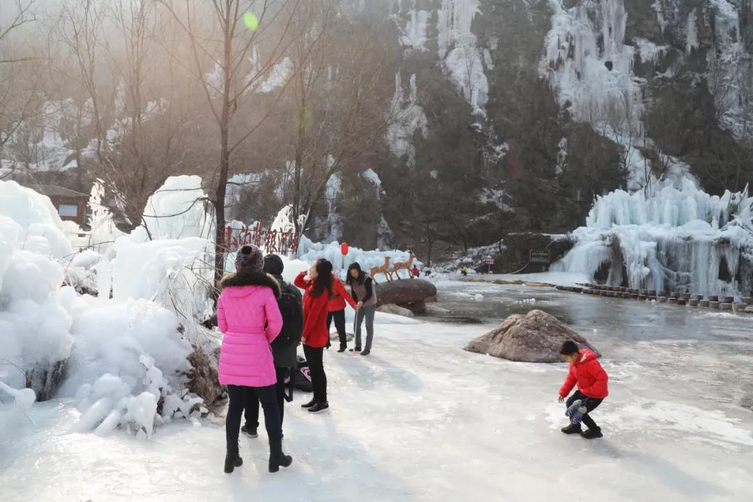 远近高低洁白的冰挂,构成了一副妙趣横生的山水画卷,宛然一片北国风光,令人留恋忘返。
