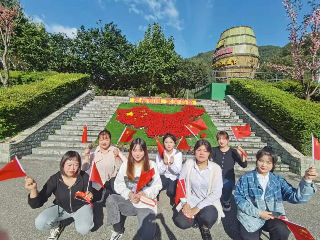 在重渡沟3号停车场,游客用数千支康乃馨组合而成的“中国地图”最为抢眼,在阳光的照射下,分外耀眼,左上角五颗黄色的五角星熠熠闪光,象征各个民族团结一心,共筑“中国梦”。