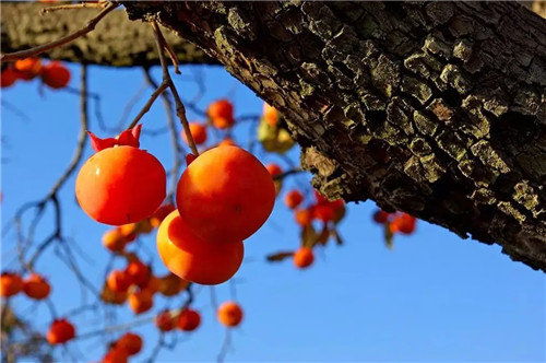 深秋时节,柿子红透,远远望去,像一盏盏小红灯笼。在萧瑟的深秋,这一抹红火,仿佛在说:只要心怀期许,人生总会喜柿连连。
