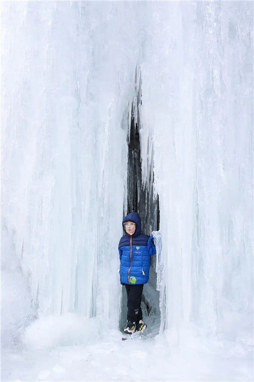 刚入景区,一条巨大的冰瀑便映入眼帘,似白练当空、银河落地,忍不住举起手机一通狂拍。
