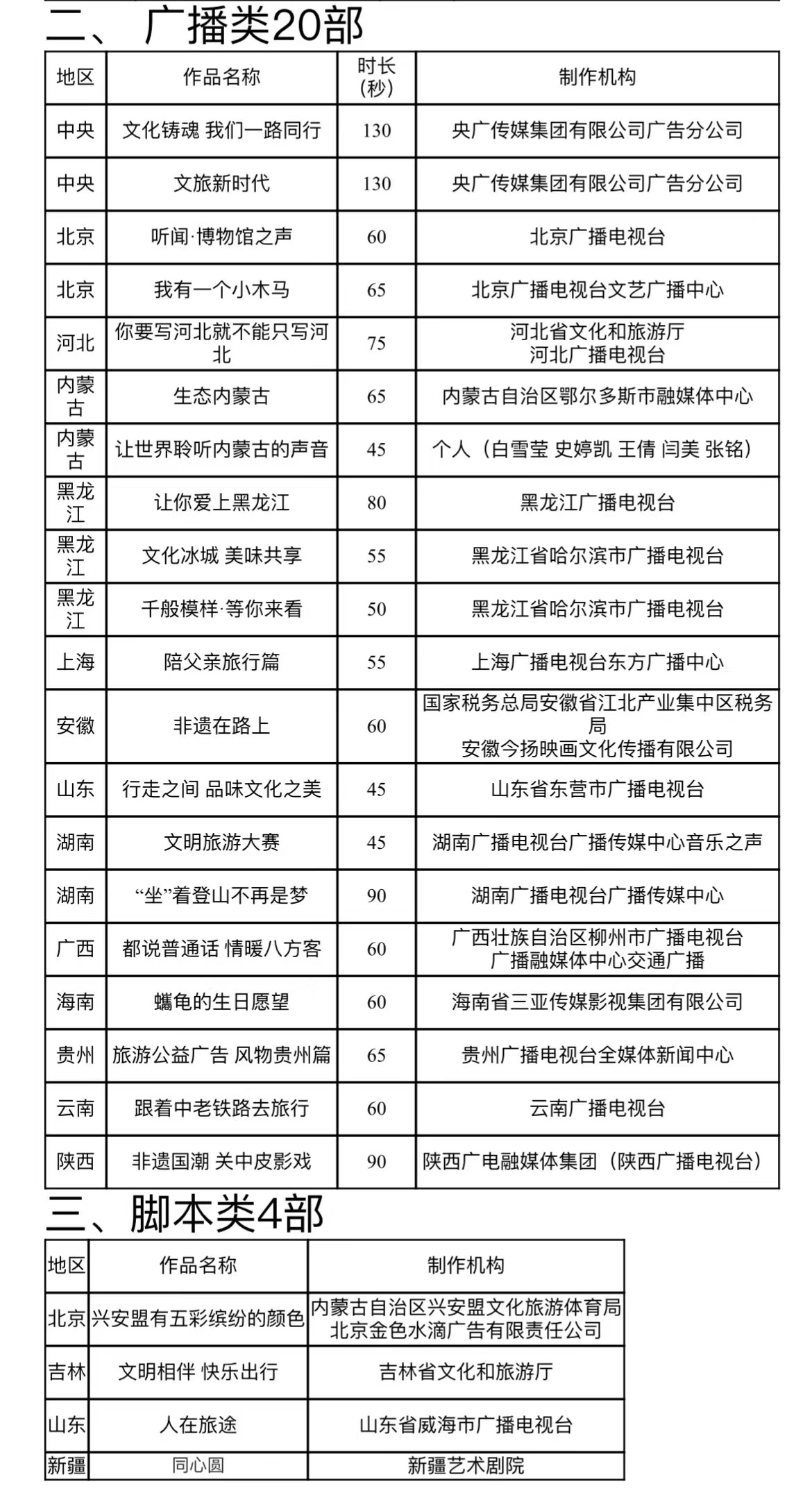 第三届全国旅游公益广告作品遴选优秀作品名单