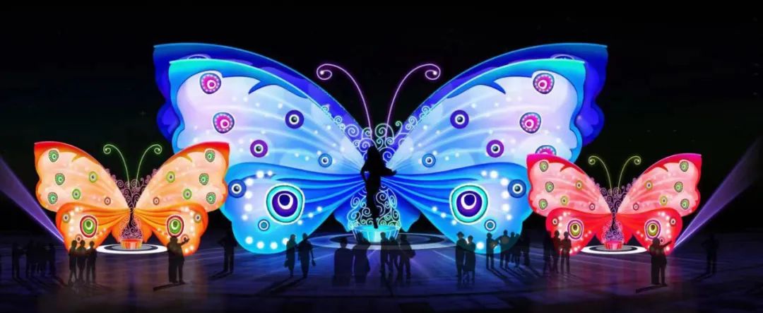 ——飞翔在空中的动物。《昆虫宝贝》《蝶语》彩灯,是以蝴蝶为代表的昆虫造型彩灯,五光十色,多点分布。其中,最高的蝴蝶造型达3米高;《白鹭物语》彩灯,高2米,白鹭没有飞翔,而是伫立在用水草、睡莲等营造出湿地景观中;《天鹅湖》彩灯,高2米。多种造型、不同颜色的天鹅组成天鹅湖内的天鹅群。