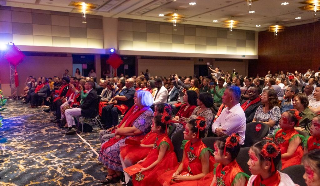 南非国民议会副议长策诺利、南非省务院常务副主席卢卡斯、南非省政府部门和教育机构人士、华侨华人及当地民众共500余人出席并观看节目。