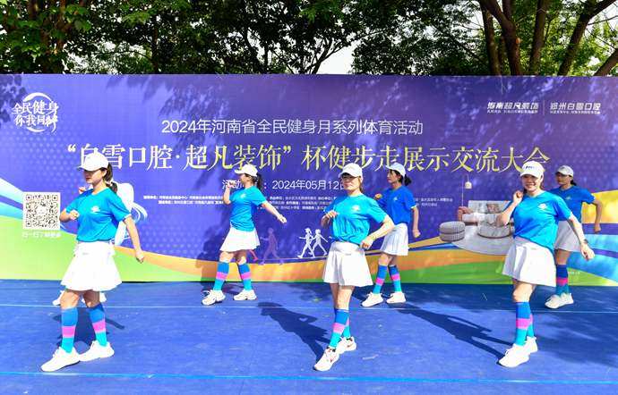 5月12日上午,郑州东风渠滨河公园内热闹异常,2024年全民健身月系列体育活动暨“白雪口腔•超凡装饰”杯健步走展示交流大赛在此举行。现场聚集了1500多位参赛者,他们来自郑州辖区的40多支团队。随着比赛的开启,各团队精神抖擞,街舞、民族舞、健美操等多形式的表演引起了现场阵阵欢呼。公园里彩旗飘扬,参赛选手们的热情与活力感染着每一个人。