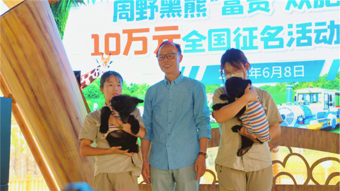 “我有名字啦!”6月8日,周口野生动物世界网红黑熊“富贵”双胞胎幼熊10万元全国征名活动颁奖典礼在周口野生动物园露营区举行。当日,双胞胎幼熊名字正式揭晓,分别被命名为“周憨”和“周萌”。