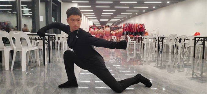 在塔沟武校参加开幕式的演出团队中,有三位少数民族学员,13岁的犹廷伟是唯一一位布依族演员。习武两年来,这是他第一次参加全国大型活动演出,恰逢全国少数民族传统体育运动会,让这位布依族少年感觉“既亲切又自豪”。犹廷伟来自贵州贵阳,自小喜欢武术的他,梦想有一天也能成为“飞檐走壁”的大侠。2022年初,他被家人送到塔沟武校习武,点名要学习武术表演专业,正式开始了自己的“武术演艺生涯”。两年时间内,他学会了七星拳、南拳多套拳法,空翻、侧空翻、后手翻这些技术动作也是信手拈来。自我感觉收获满满的犹廷伟一直在期待一个登上大型活动舞台的机会,在被学校选中之后,他第一时间就给家人打电话“报喜”。“这是一次少数民族的盛会,作为一个布依族孩子,能够参加这么盛大的演出,特别有意义,爸爸也勉励我认真演,好好表现。”犹廷伟说。