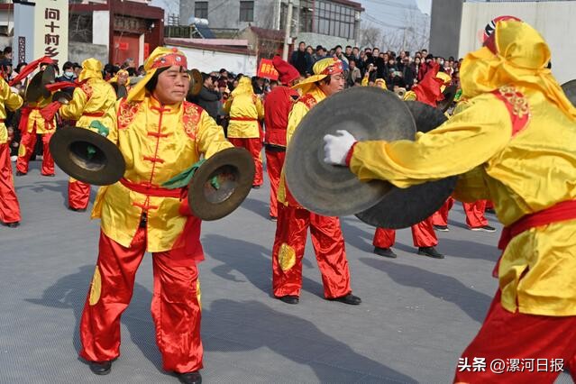 在“红红火火过大年”漯河市2025民间艺术展演中,源汇区问十乡民间艺术队表演的《铜器舞》赢得了评委和观众的好评,被评为最佳展演作品。在展演现场,问十乡民间艺术队的队员们分别站在舞台两侧。随着鼓声节奏的逐渐加快,现场的气氛愈发紧张热烈。大铙的声响与鼓声交织在一起,形成了一首激昂的交响乐。