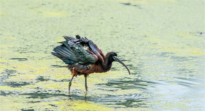 据了解,彩鹮属鹈形目鹮科,与朱鹮是近亲,通体呈深栗色,羽毛在阳光的照射下呈现金属光泽,绚丽多彩,因此被称为“东方宝石”。彩鹮喜欢在河流、浅水湖泊、沼泽、水塘等淡水生境觅食,食物以小鱼、小虾、水生昆虫等为主。